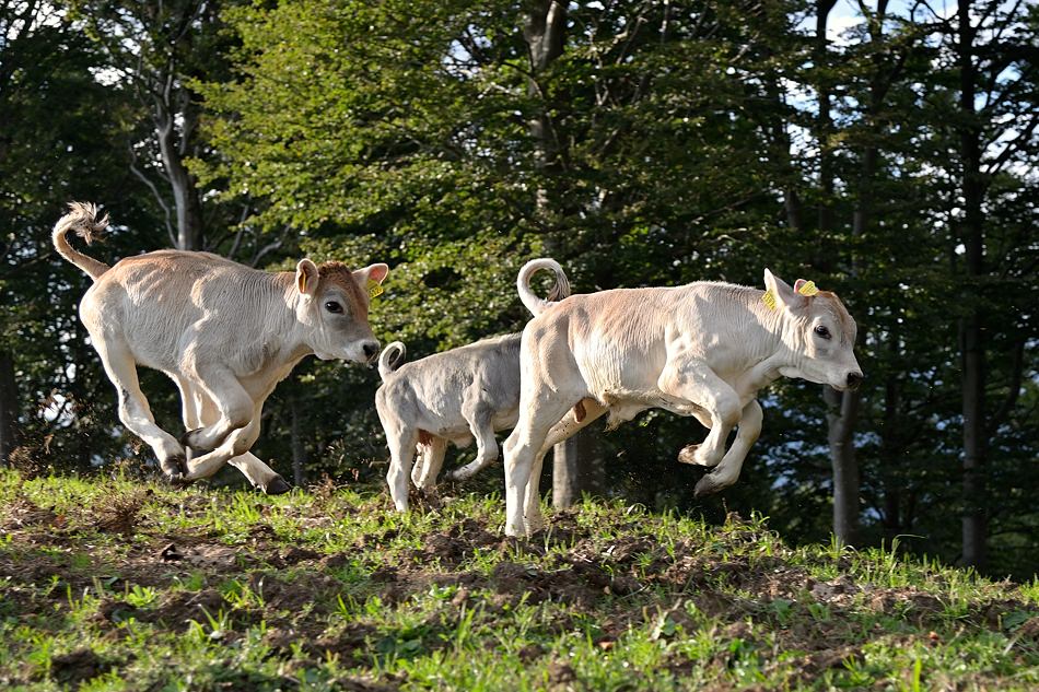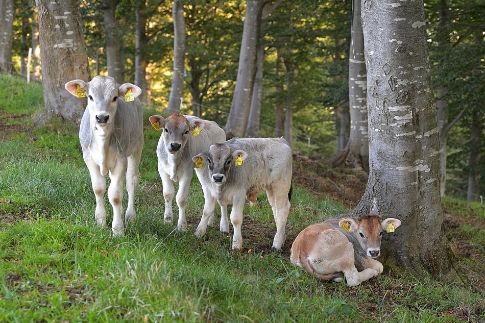 Grauviehkühe sind trittsicher und gewohnt im steilen Gelände zu grasen. Sie haben gute Muttereigenschaften und einen ruhigen Charakter.