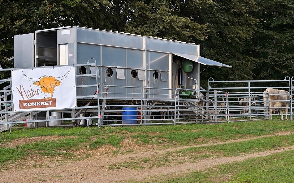 Noch ein etwas ungewohntes Bild… unser Label vor einem Melkstand…