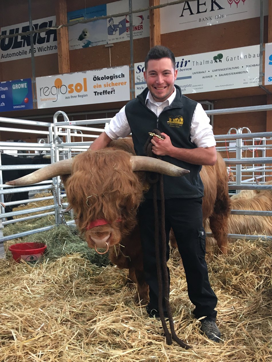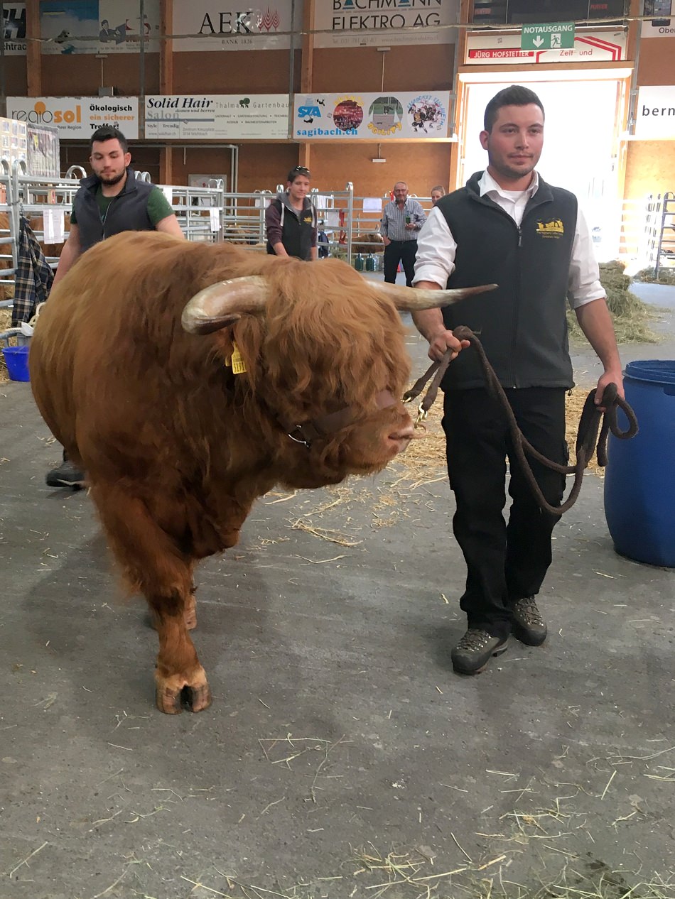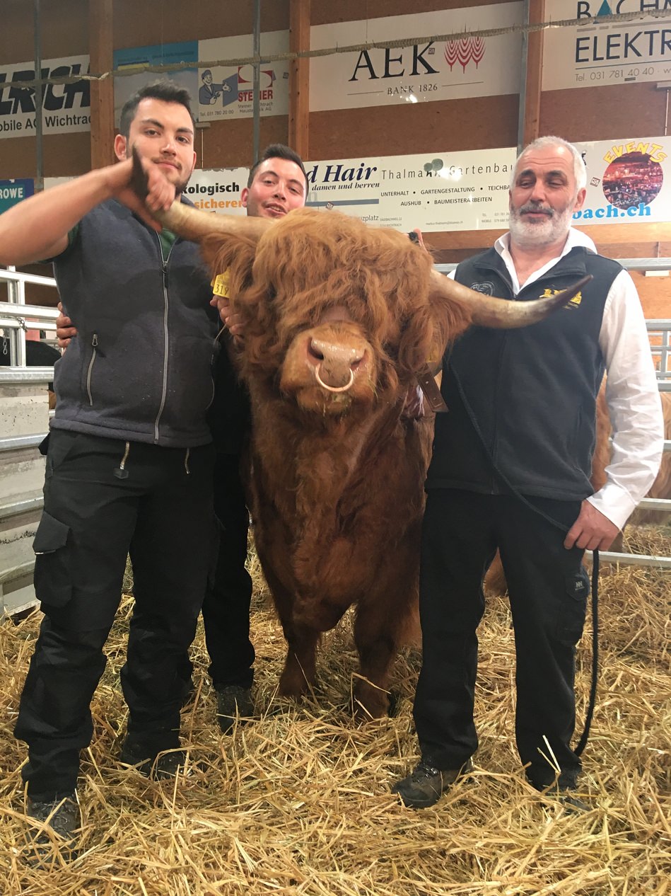 Bereits vor der eigentlichen «Show» habe ich mich mit der passionierten Züchterfamilie Stöckli über den Kauf des Zuchtstieres geeinigt. Lilian, Peter «Pesche», Nico und Mirco gehören zu den Top-Züchtern in der Schweiz. Der Familien-Landwirtschaftsbetrieb hält im Gantrischgebiet seit 25 Jahren Hochlandrinder und gehört damit zu den Pionieren in der Schweiz.